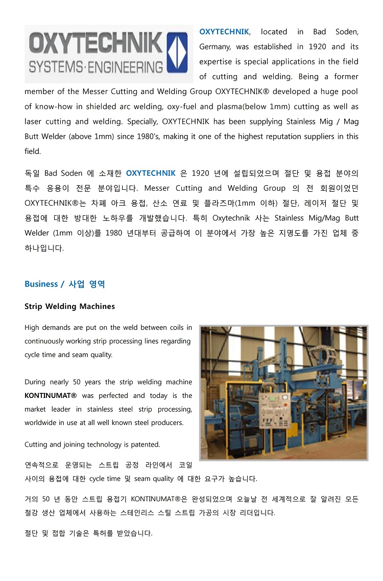 홈 > Equipment & Product ( 취급설비 및 제품 ) > Oxytechnik
